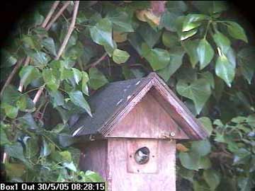 However, it wasn't bold enough to leave the nest box quite yet and returns to the familiar comfort of the inside.