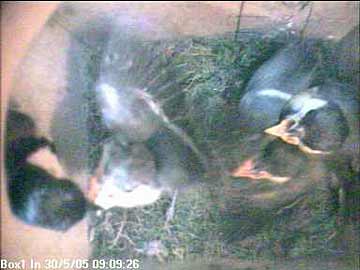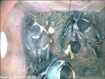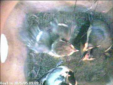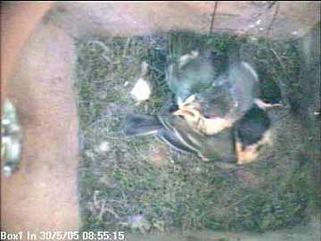 I don't know whether Babe was still upset by the cat's visit, but half an hour later she was still very wary of going into the box.. Or perhaps it was a ploy to get the chicks to fledge!