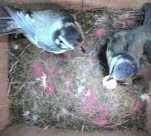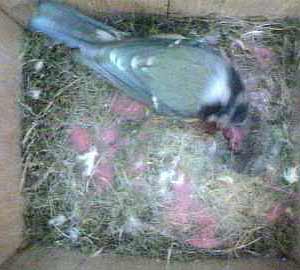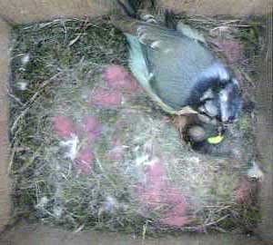 Here's Boris again trying to feed the chicks - it's quite amusing to see him come in with food when Kelly is sitting on the nest. He clearly wants to feed them himself and hops around the nest cup trying to find a gap. Usually Kelly sits tight and eventually Boris gives in and passes the caterpillar to her.