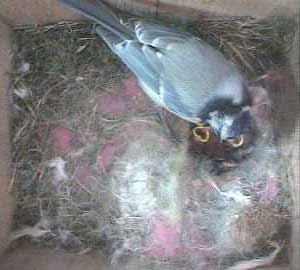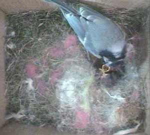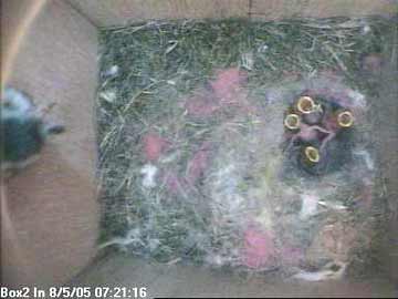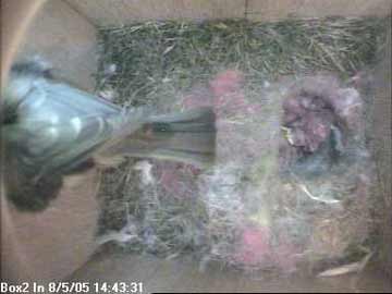 Earlier I said that Boris was getting adept at feeding the chicks. In fact he is more than that, he is a master! In this picture you can see Kelly leaving the nest in the early afternoon.