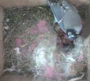 This time Boris has come into the nest when Kelly is away. He is quite an adept now and has no problem in getting one of the chicks to take his morsel.