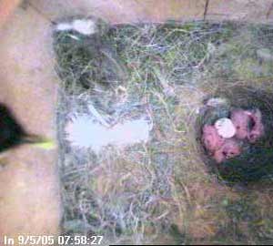 This is the first image of the chicks that we have - of the five eggs, four have hatched and one still remains intact.