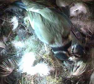 At long last, Kate has dropped her guard and let us have a look at her eggs - and what a beautiful sight! There are at least 9 eggs here which means that she must have been laying one every day since we saw the first egg!