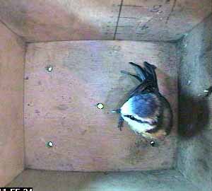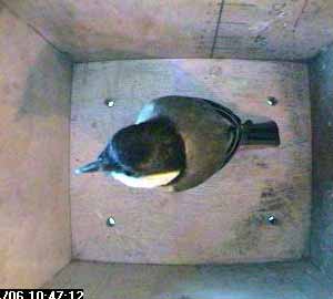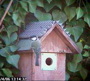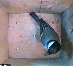This picture was taken on 1st April. Even though the bluetits visited more often that the great tits, they didn't always enter either. For example, there were no visits inside on this day.