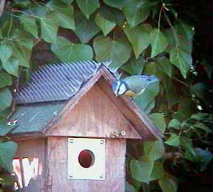 Suddenly, a bluetit appears outside the box. Has it just realised what is about to happen to its box?