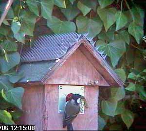 Since he did not bring in any moss, I think this must be the male. His black chest patch, or what you can see of it, looks pretty big too!
