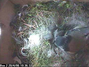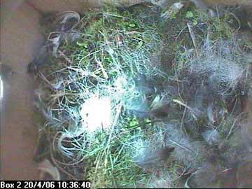 When we looked for signs of an egg in Kate's nest this morning, this was all we could see. No sign of an egg there.