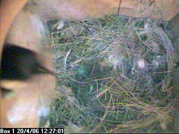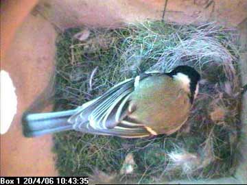 We needn't have worried - after a few minutes she was back again. By this time the lights had switched off and this time she did not leave the nest again..