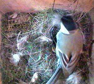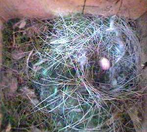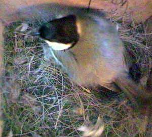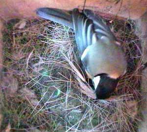 She is back again with some interesting looking material - we haven't a clue what it is or where it came from - but it looks right for this stage of the nest building project.