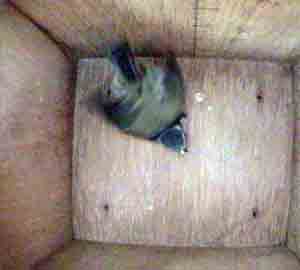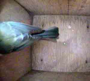 Suddenly, the bird turns and wriggled across the floor of the box keeping its breast against the floor.