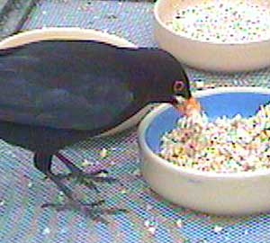 When they eat this mix, which they do with gusto, they grab a chunk and toss is up so they can catch it with their beak wide open so that the food can be swallowed. While this is going on, you can see a robin in the background waiting patiently for his turn!