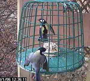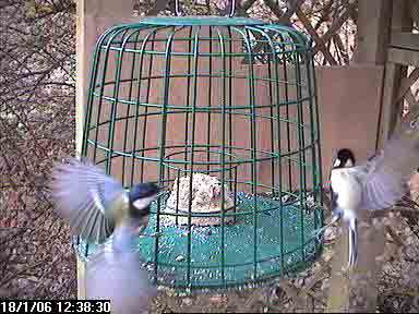 Not so the blackcap which doesn't seem to like to share the feeder with anyone, and particularly not with a great tit!