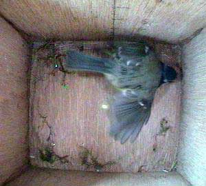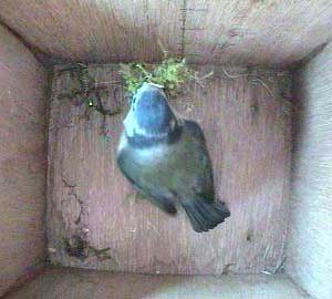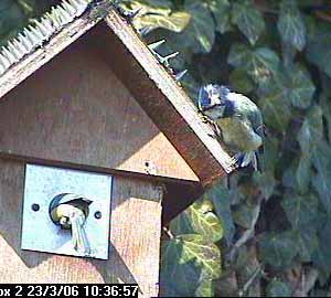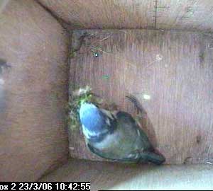 Perhaps we have two pairs interested in the box, the flighty but bold one who spends a lot of time taking moss into and out of the box, and the rather more timid pair who take for ever to decide whether they like what they see or not.