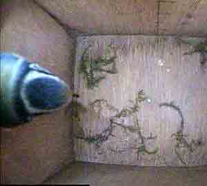 Here she comes with some more moss - only to find the male already there. Is he keeping an eye on what she is up to?