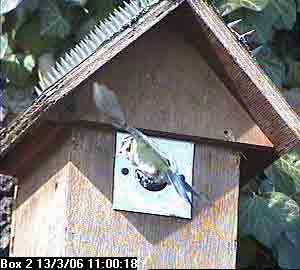 Something is going on in and around Box2! I think perhaps I was premature to name one of the birds as there seems to be a fight going on about the ownership of the nesting site.