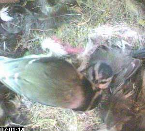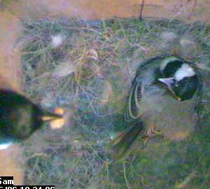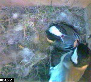 Sam hasn't been keeping a very public profile but he is still around and is shown here passing what looks like a beakful of mealworms to Claire.