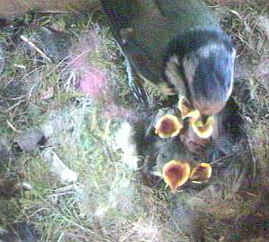 Here you can see 7 gapes. They are being fed from the left hand side (viewed from the entrance hole). This seems to be Ben's side whereas Kate feeds from the right.