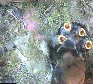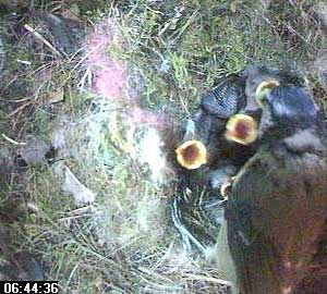 A final shot of Kate feeding the chicks. You can see her white head band is quite insubstantial when compared to Ben's.