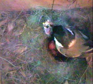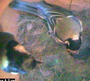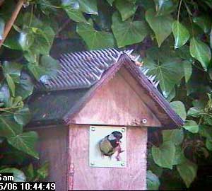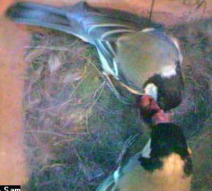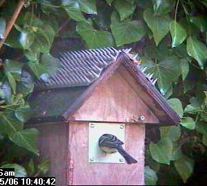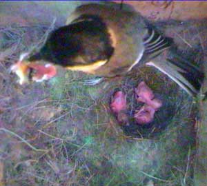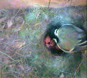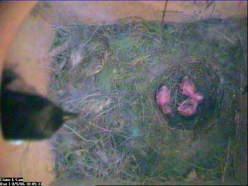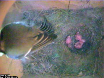 Here you can see Claire leaving the nest box with the dead chick still hanging from her beak.