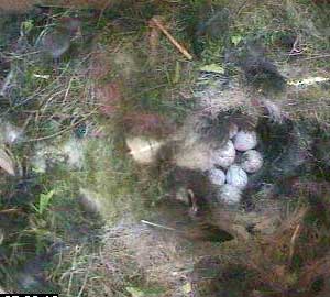 This is the first time Kate has left the nest cup uncovered since the first chick hatched. I think you can see two chicks here but the image is not clear.