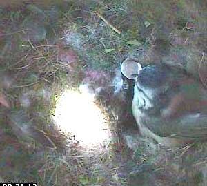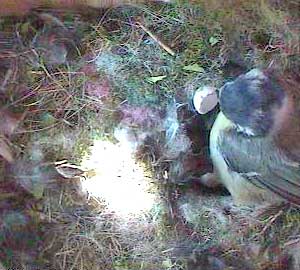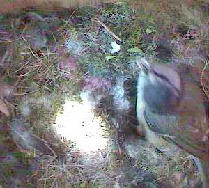 Here you can see a small piece still in her beak and another piece on the edge of the nest.