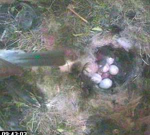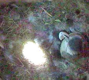 It's now about ten past six. This is the first time Kate has been off the nest since the start of recording which is about 6 o'clock. There is no sign of any eggs hatching yet!