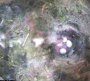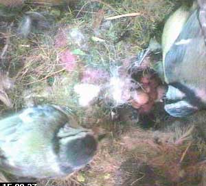 It's now 2 o'clock and at last we seem to have another egg hatching - at least this looks like a piece of eggshell!