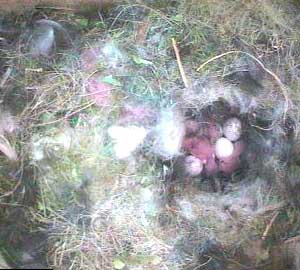Another hour and a quarter has passed and I am not sure whether any more eggs have hatched. However, the nest cup is a writhing mass of pink chicks!