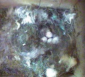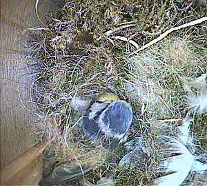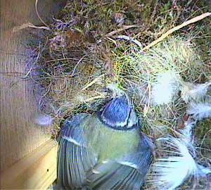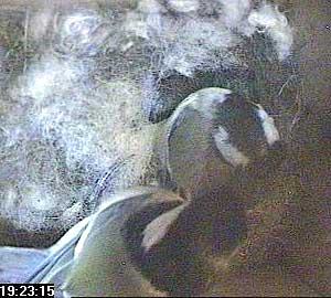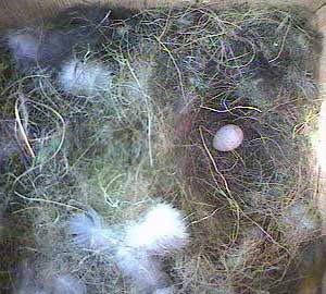 Now Fay has laid her first egg! Bluetits' eggs are clearly much smaller than those laid by a great tit!