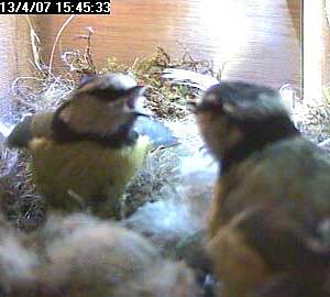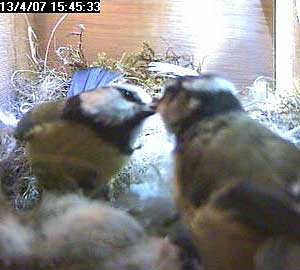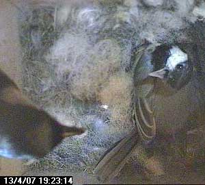 At least Angus is doing his bit - here he prepares to feed Abby on the nest.