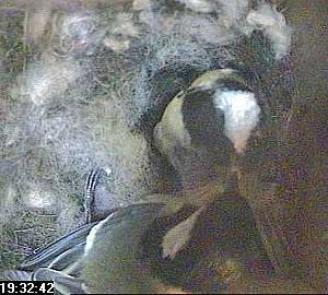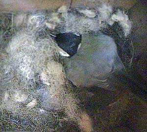 Abby has brought in a huge amount of nesting material. She is almost buried in the stuff!
