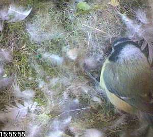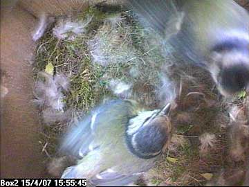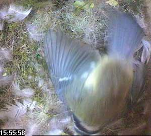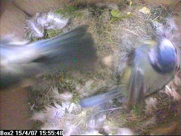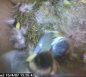 Suddenly Fay arrives in the nest box. She almost seems to fall into the box such is the speed of her return.