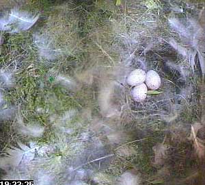 Some hours later I was able to find the picture I was looking for - Fay now has three eggs! And another one tomorrow I expect!