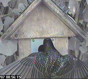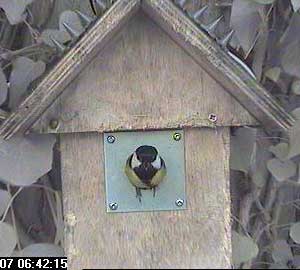 In the middle of the night, a spider walks across the front of the nest box. It went as far as the nest box hole - and then walked away again!