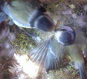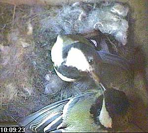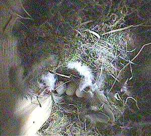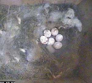 Abby now has three eggs. She keeps them well covered most of the time and this shot, taken early by natural light (ie before the lights were switched on) is one of the few we have.