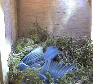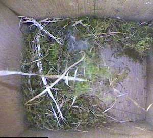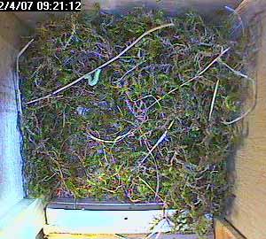 Fay is still at the "playing nest making" stage. She takes nesting material out as much as she takes it in with the result that the state of the nest varies little from day to day. Her current preference is for hay.