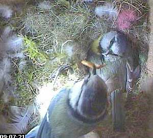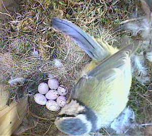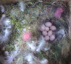 This is the best shot we have found of Fay's 8 eggs. They look a different colour to Abby's but I think that is a trick of the camera rather than any inherent difference in the eggs themselves. Under different lighting they look almost white like Abby's.