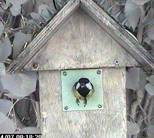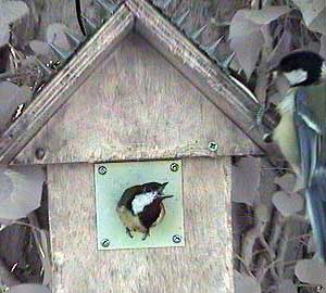 Whether she has gone to the entrance of the nest box because Gustaf has called her, or because she wants to be fed, I don't know but Greta seems to be saying something here.
