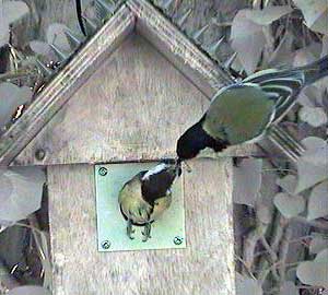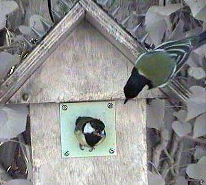 Gustaf feeding Greta at the hole again. I cannot remember this method of feeding the female happening before.