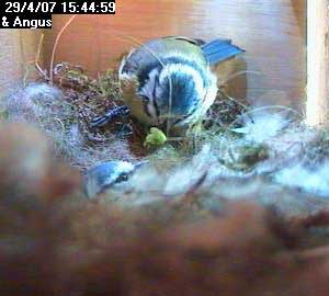 Angus brings a little green caterpillar to the nest to give to Abby.