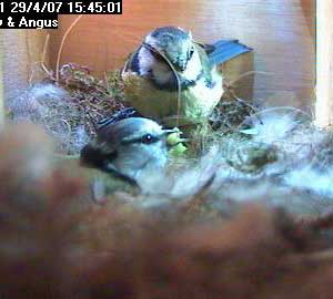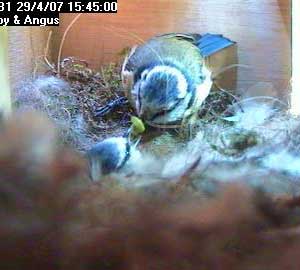 Abby now has it. This is all good practice for when he has to feed his chicks. He has been pretty attentive from the start, so we hope that this is a good sign.