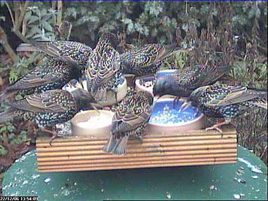 The starlings love the fat mix that Elizabeth puts out for them. I doubt that you could fit any more on the table without making it bigger!