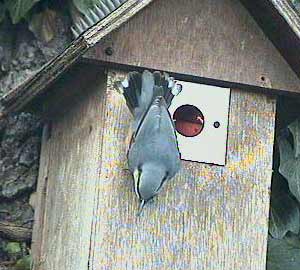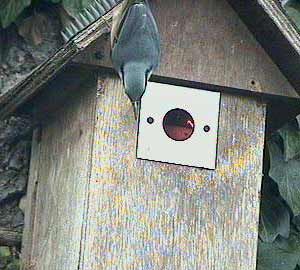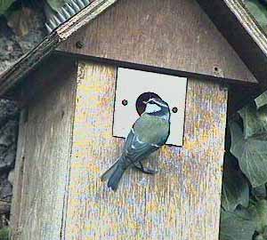 We have decided to replace it with a new camera of the same type and today, only 24 hours after I ordered it from BoxWatch, it has arrived! What we couldn't know when we planned this was that a great tit pair would take over the box so rapidly after it was put back up, and that the male would start roosting in the box over night!