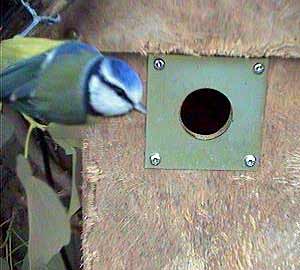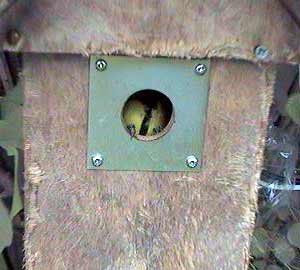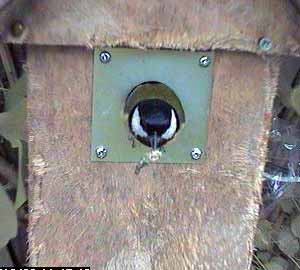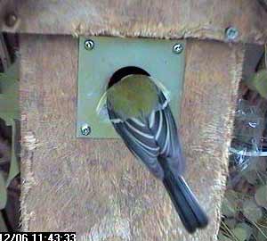 The great tits are very busy with this box. They are in and out all the day. I was hoping that by the time dusk was falling, the birds would go off to roost and I could change the camera without disturbing them. The great tit male roosting put an end to that idea.