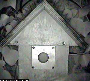 An hour later and the internal camera has been changed and the alterations to the support gantry completed. This was the first view of the front of the box. Perhaps it's a bit too low though. It's too late now, but I'll try to remember to take a photo of the gantry and post it here sometime soon!