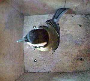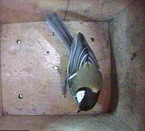 This is a shot of the great tit inside the nest box.
