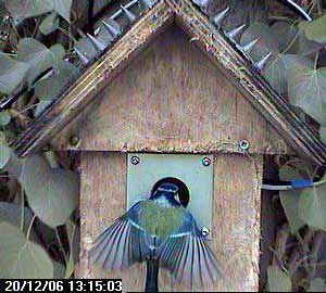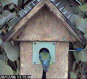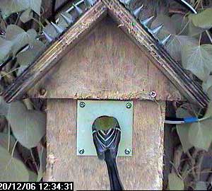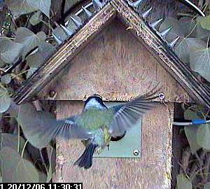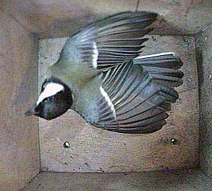 We pick up the story an hour later when one of the great tits enters the nest box again.