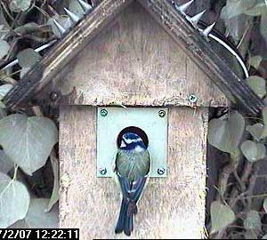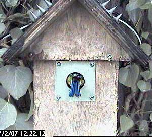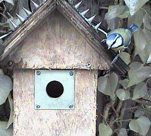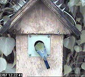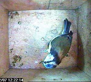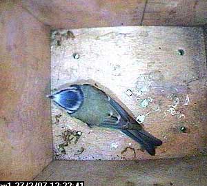 The situation at Box1 is still uncertain. While there is a female great tit visiting quite frequently as well as roosting over night, the bluetit still keeps an eye on this possible nesting site. Now it appears as though the bluetit is introducing his partner to the box!