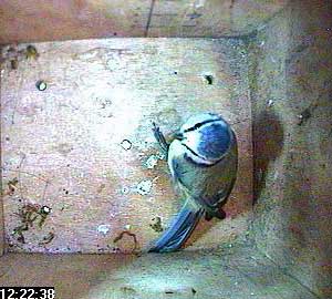 And this is why I think the first bird was male and the second female. The normal pattern when a bluetit pair are searching for a nest site is for the male to do the initial searching and for him then to get the female to come and have a look at what he has found. He would normally then leave her inside the site to make up her own mind as to whether it is the one to go for.