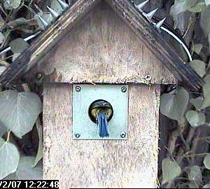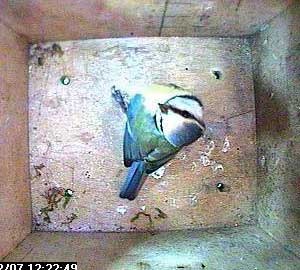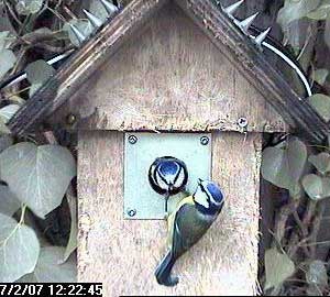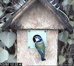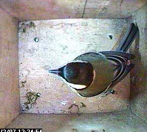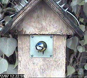 Two minutes later the great tit arrives. No messing about at the entrance - she goes in straight away.